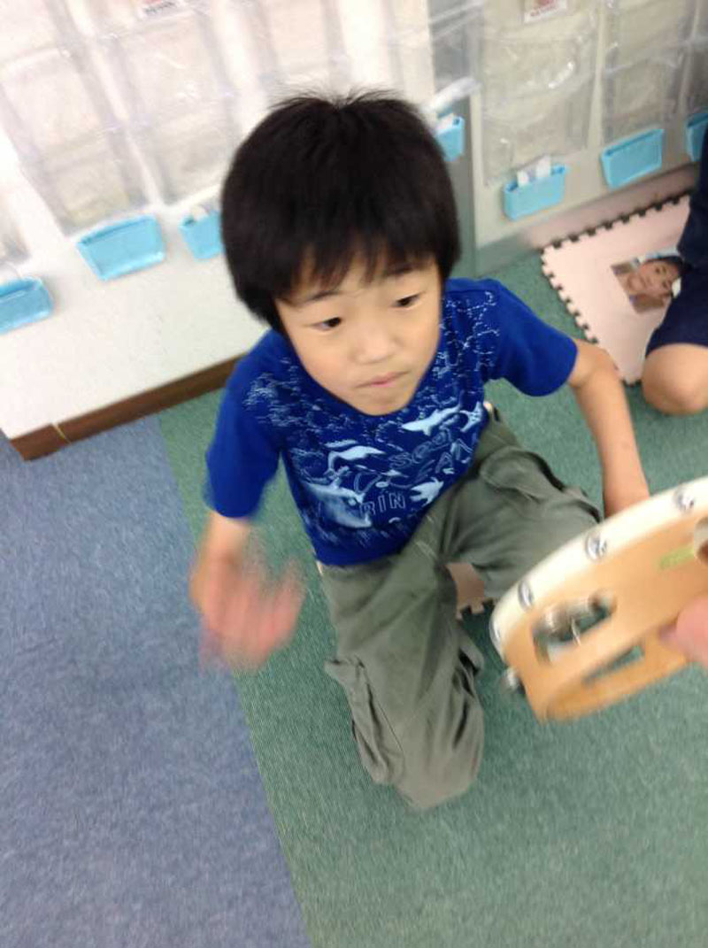 タンバリンや鳴子を使ってリズム打ちをしながらストレス解消!