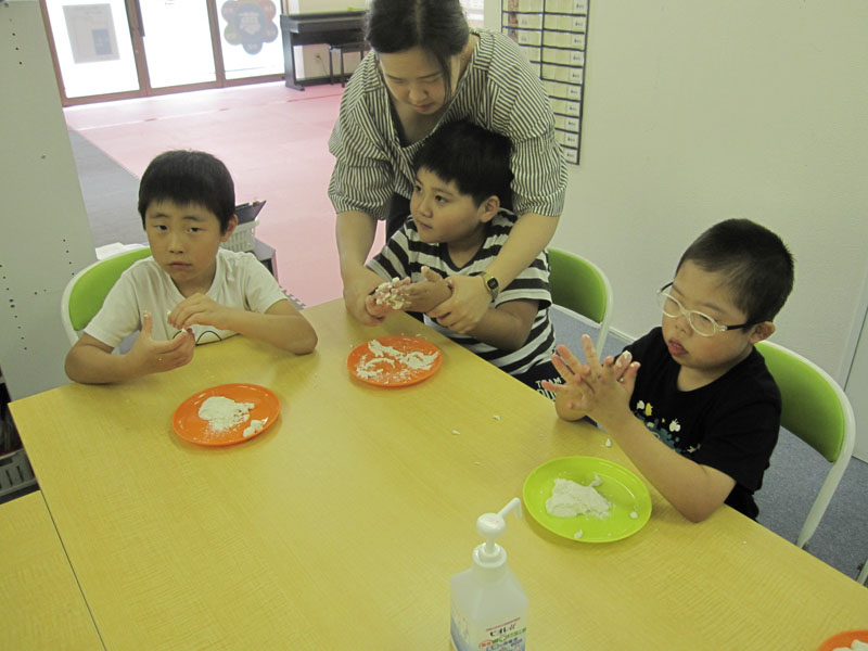 みんなで白玉をコネコネ!一口サイズにまるめます。