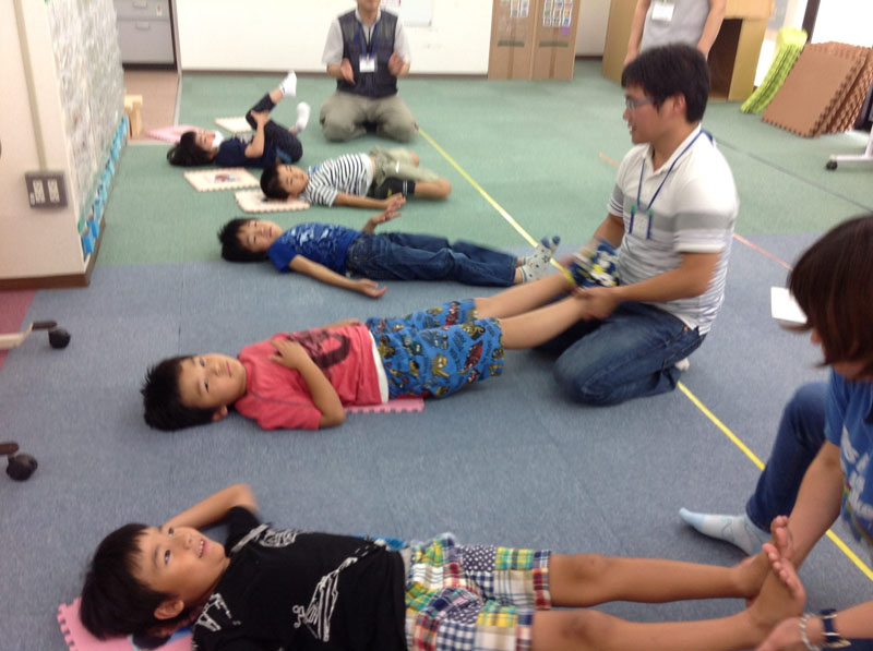 体を動かした後は、ゆっくりとした音楽に合わせて