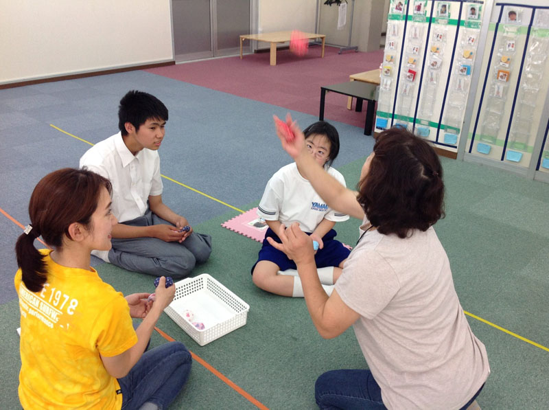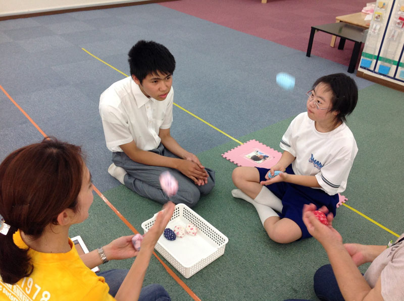 でもいつのまにか、お手玉を投げ合う戦いに突入してしまいました。こちらが一番楽しそうでした!