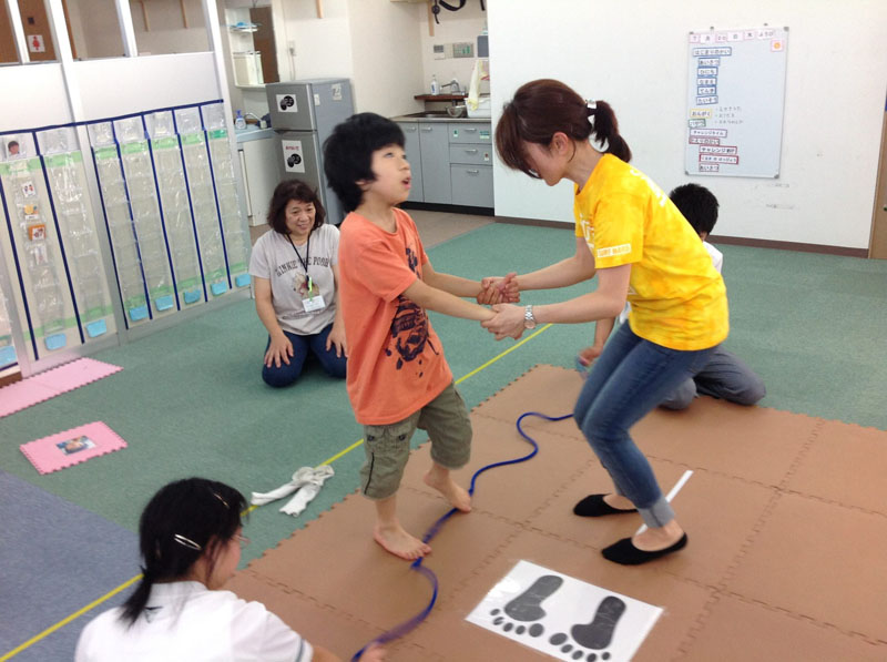 二人跳びにもチャレンジ。遠慮して体を離すとうまく跳べないよ~。もっとくっついてね。