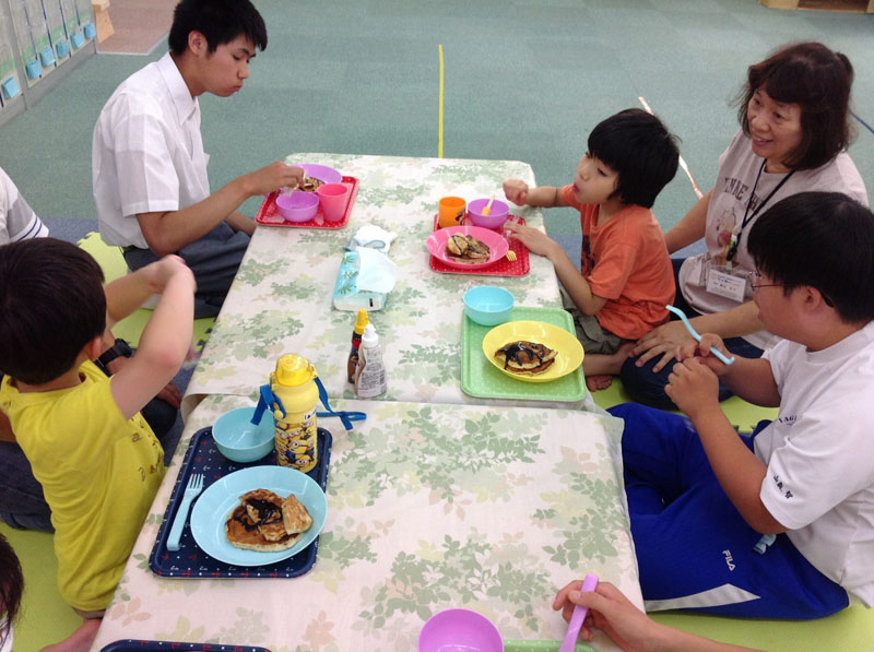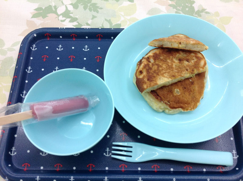 おやつは、バナナが入ったパンケーキとアイスキャンディ。