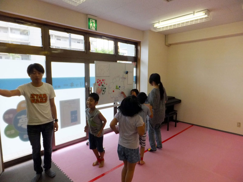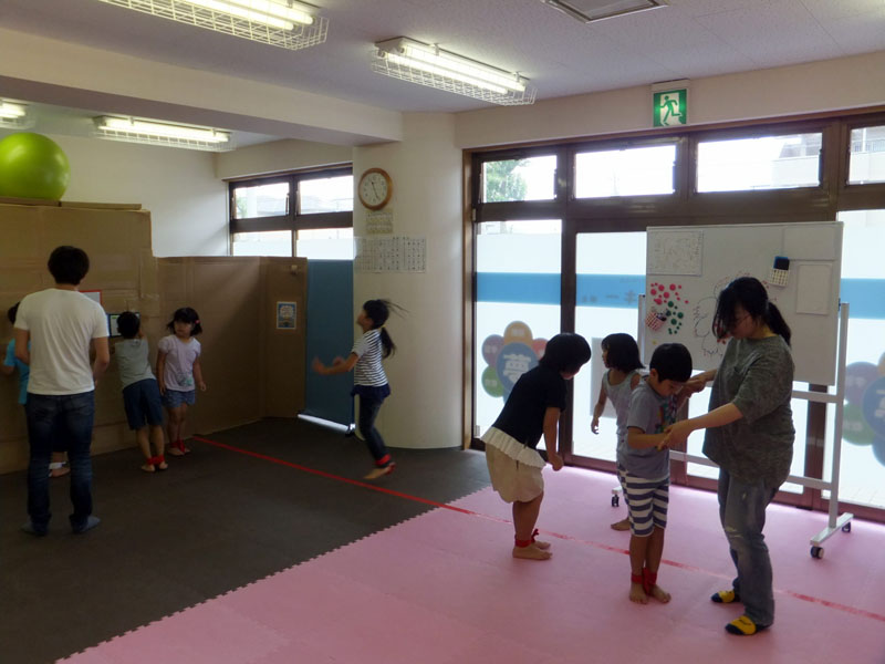体幹を鍛える「両足跳び」と相手とリズムを合わせる「二人三脚」をしました。