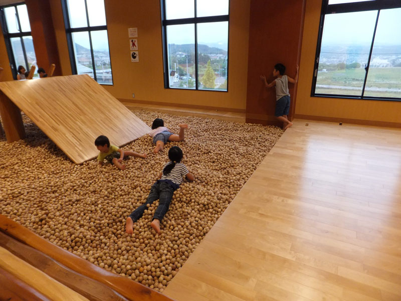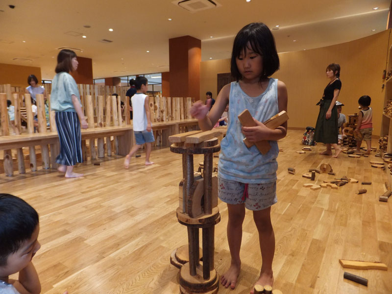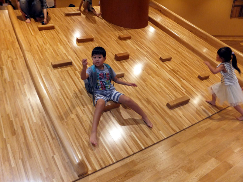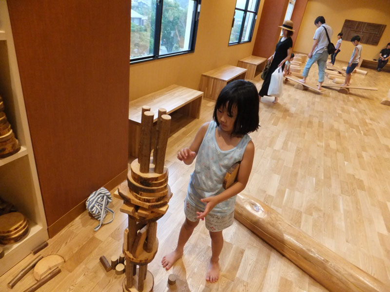 感性の森、室内では木のぬくもりに包まれて、体を動かす~