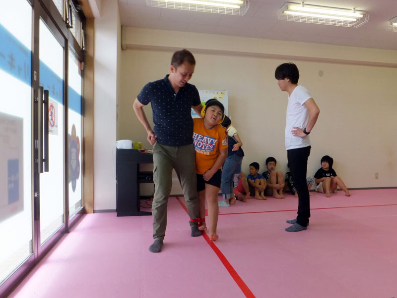「二人三脚」「両足とび」などなど、自分の体をコントロールする練習をしました。