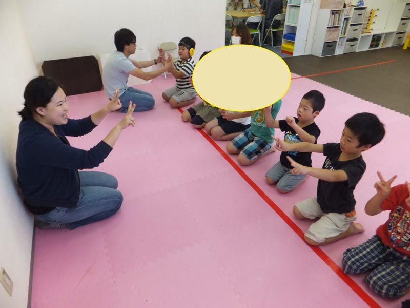 スタートは絵本、ラジオ体操からの「まねっこ」遊び。
