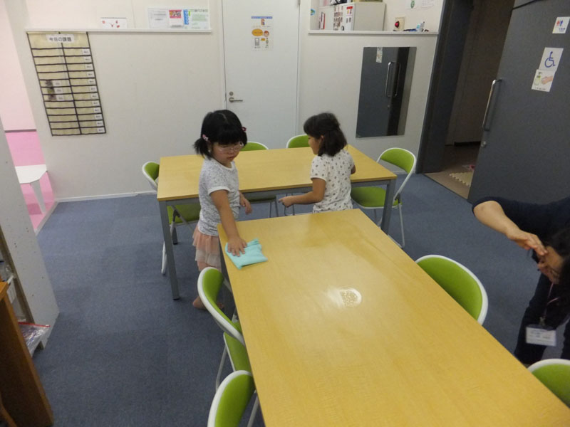 そのまえに テーブルをよくふいて きれいにします(*^^)v