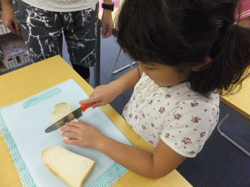 せつめいをよくきいて パンをきったら