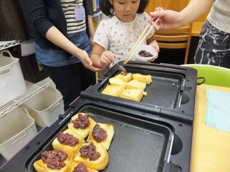 やきいろがついて あずきをのせたら