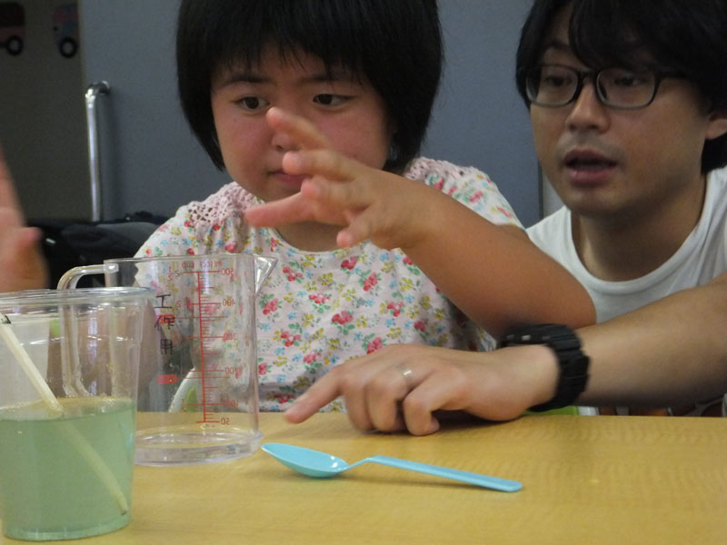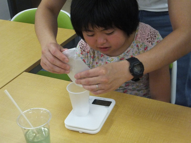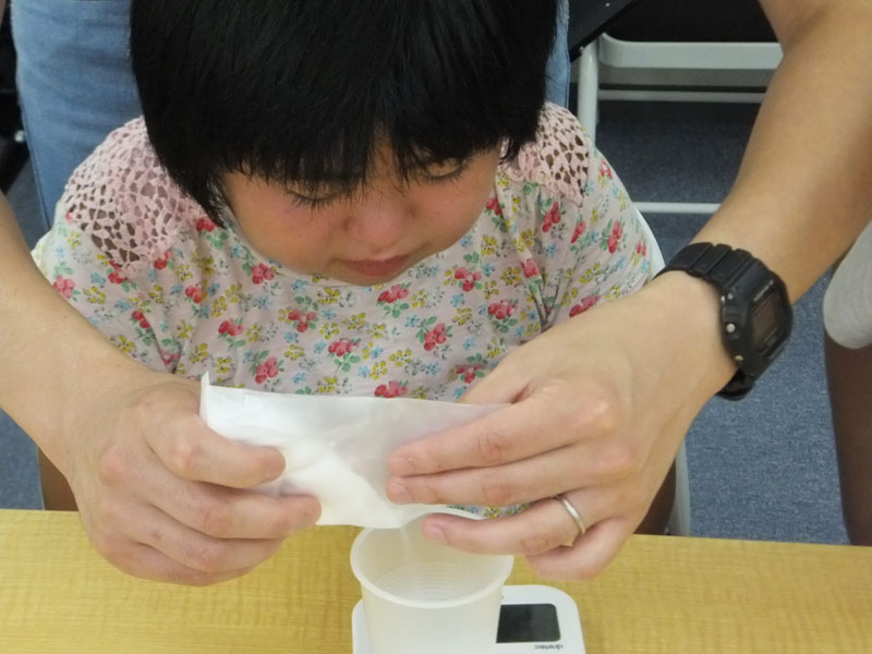 まずは、水の分量をはかります。これがいがいとむずかしいんです!