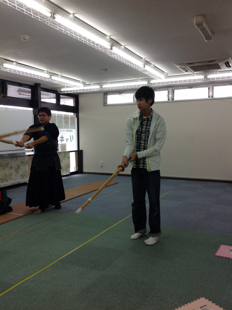 竹刀の持ち方、素振りの仕方をおさらいして