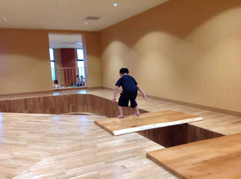 入場するとき木工で出来た迷路を通り