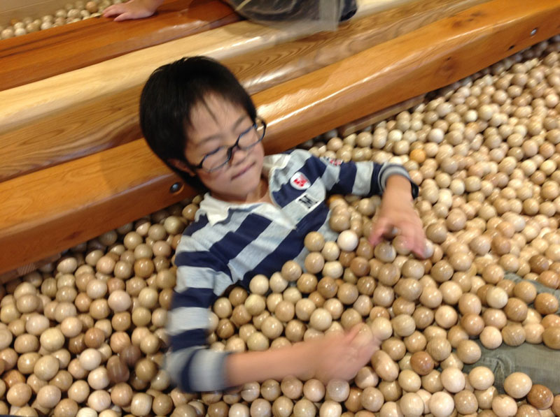木のボールプールで