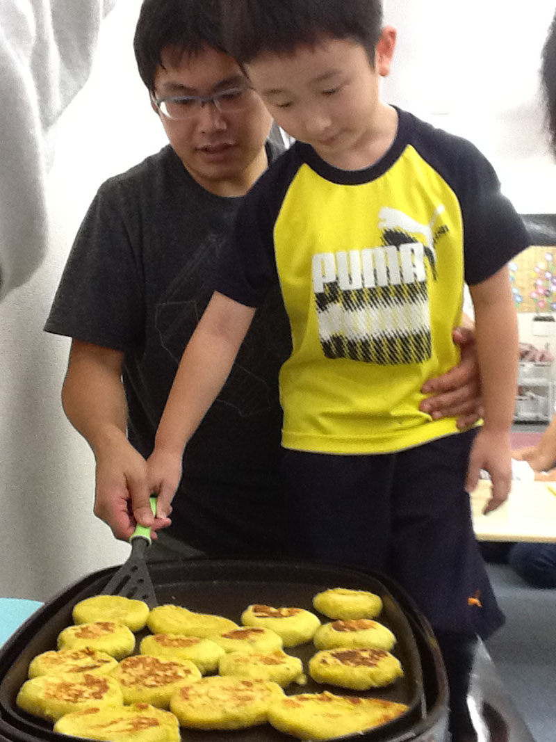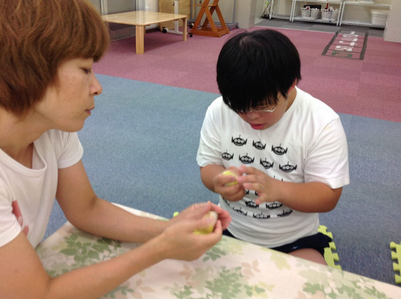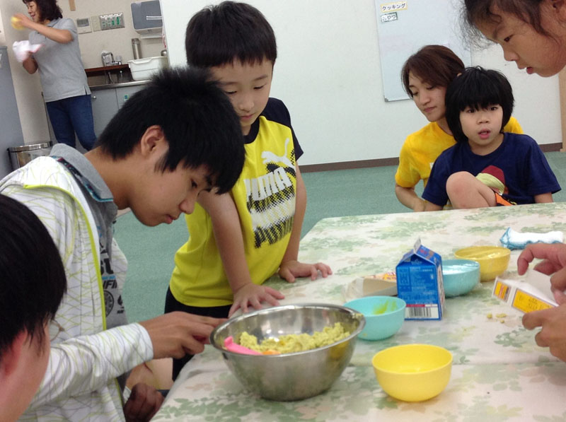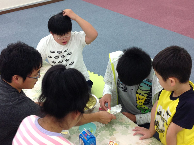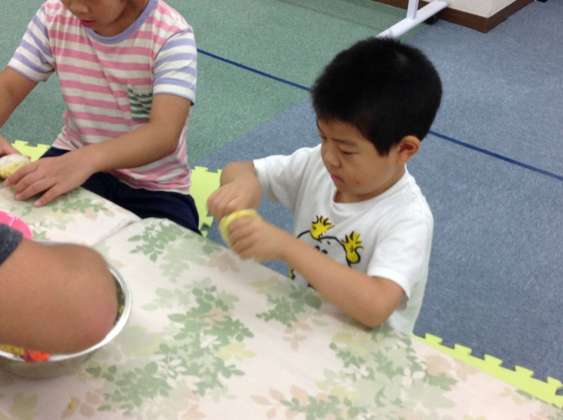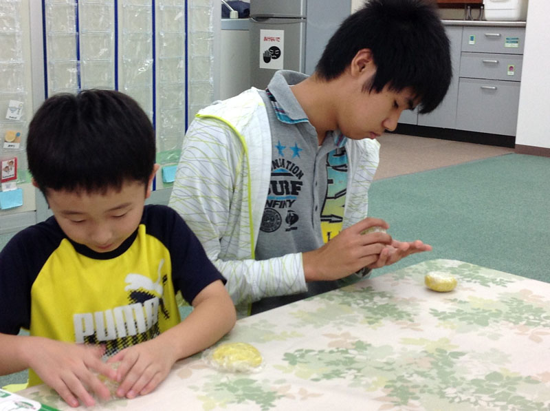 一番年上のお子さんを中心に、みんなで協力して生地をこねてつくりました。