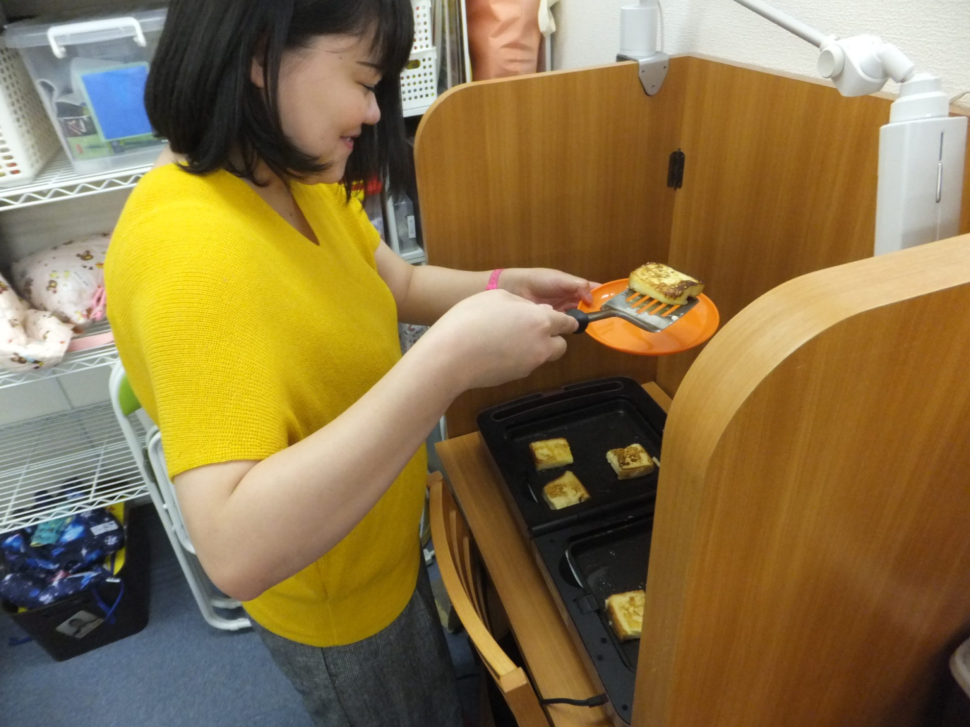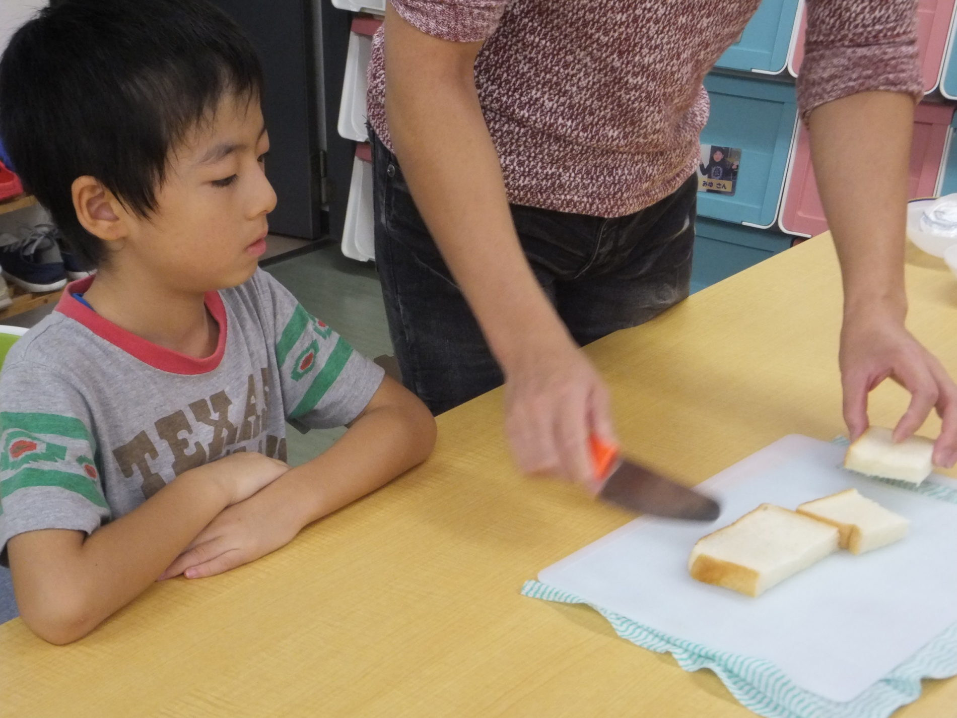 食パンを きっていきます。
