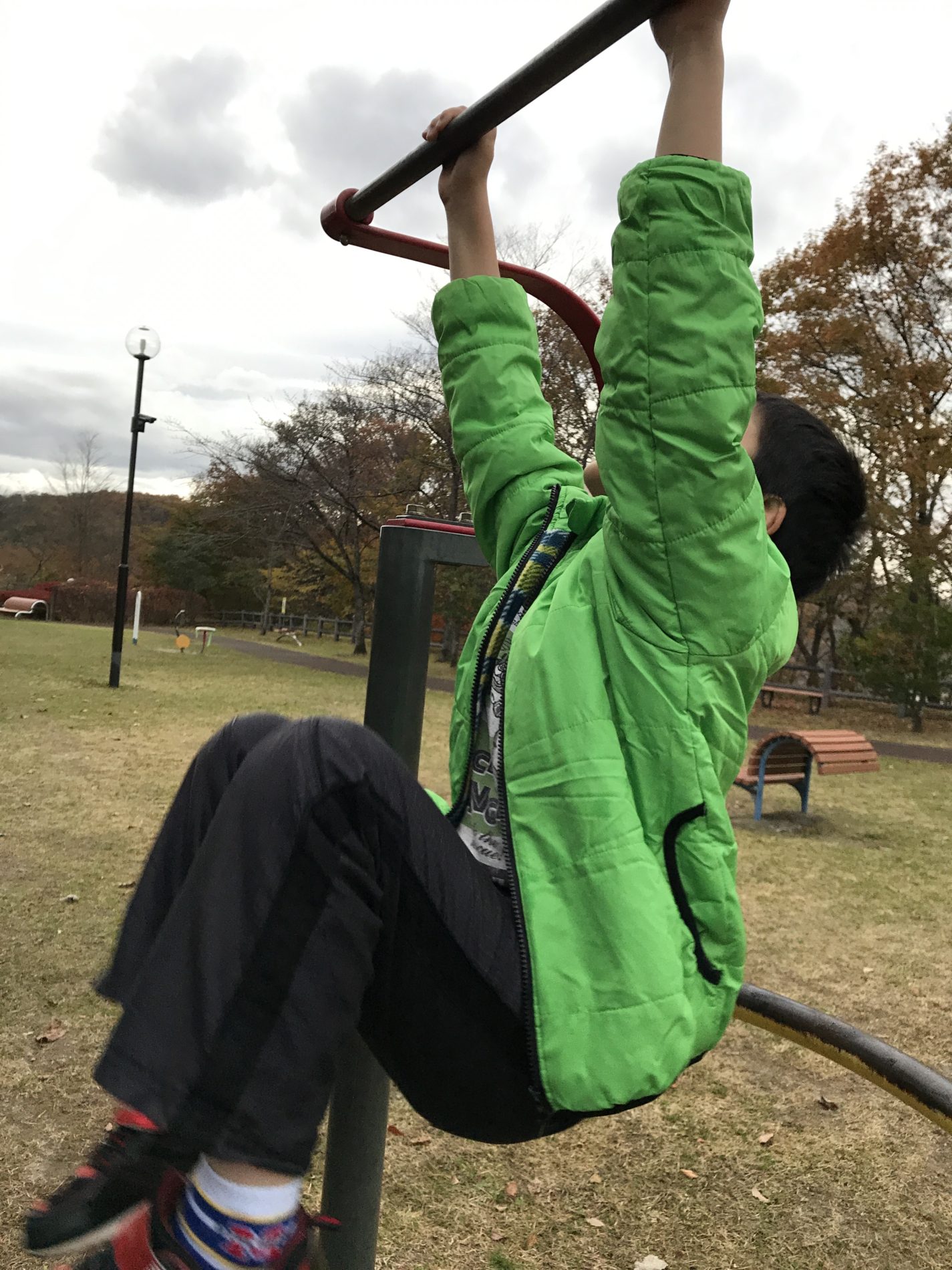 とちゅう、けんこうきぐがあったので、みんなで懸垂(けんすい)にちょうせんしました(*^^)v