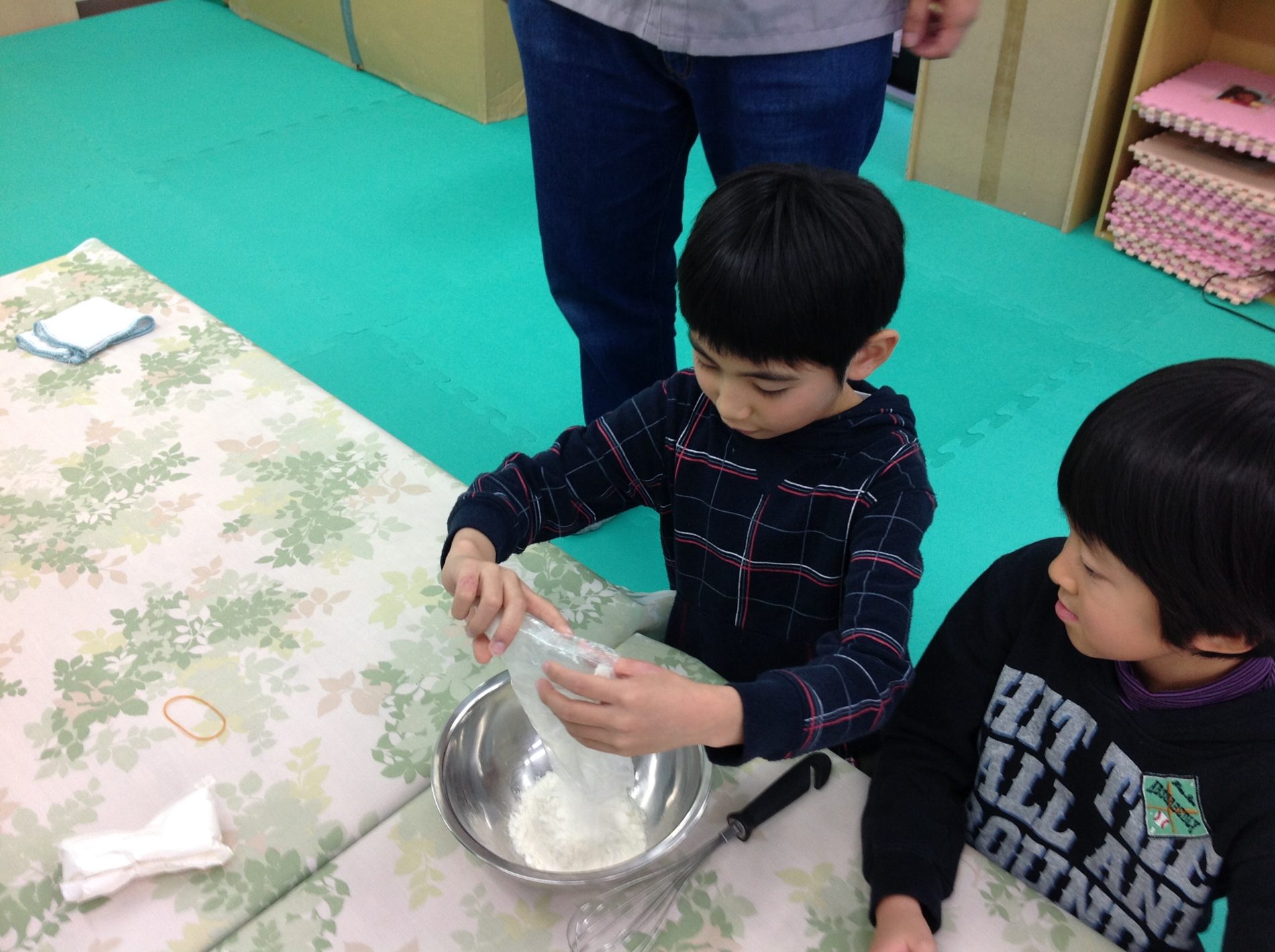 いつものようにてぎわよく、『あわが出来たらひっくり返すんだよね!』『焼きかたはこのくらいだよね』とおたがい声かけあいおこなってくれていました。