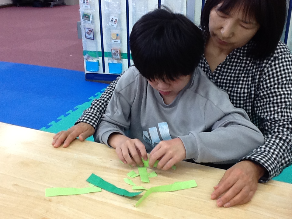 また、両面テープの紙をはがす工程は、指先の力加減や動きの調節の練習にもなります。