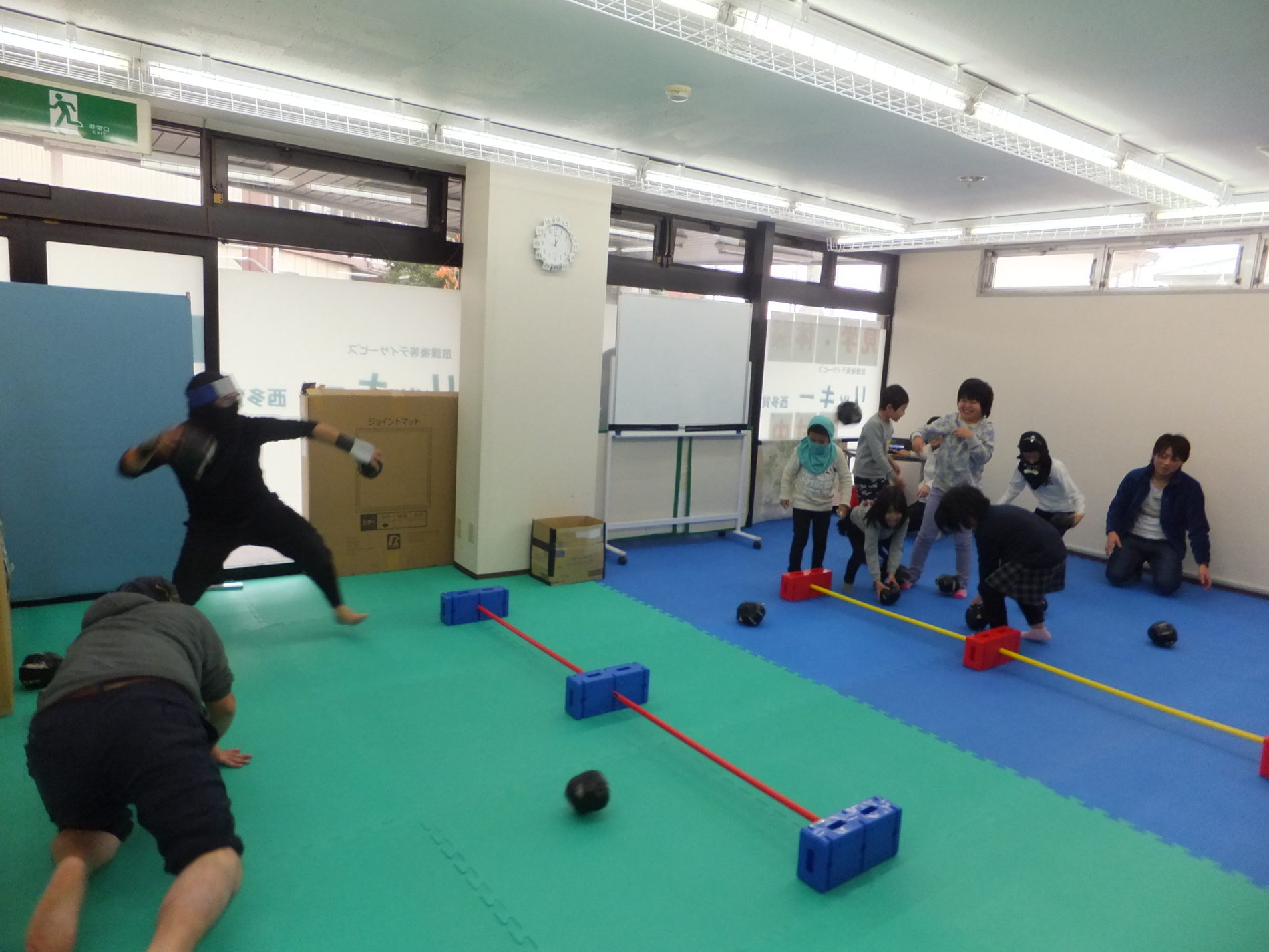午前中は、リッキー西多賀にあつまり、みんなで忍者ごっこです