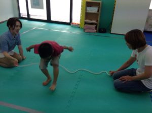 ニュルニュルしたへびが絡み付かないように上手に跳べたね!