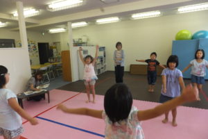…おともだちが おてほんを してくれるようになってから みんな たいそうが じょうずになってきたように かんじます。