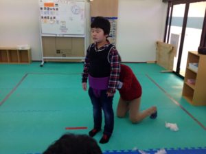 遅れて到着したお子さんとも、自由時間に相撲ができました。