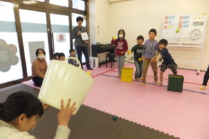 音楽が止まったら マットをタッチするのだ<(`^´)>