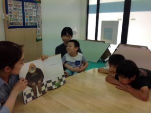絵本の読み聞かせから、今日の活動はスタートです。