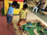 大型遊具の他、プラレール、竹馬、積み木コーナーなどがあり、