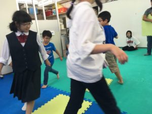 「マットの外側を歩きます」、「前の人を追い越しません」などのルールを確認してスタート!