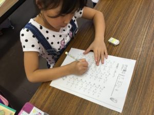 つづいて、計算大会です!ホワイトボードに書いてある問題をみんな丁寧に解いていきます。