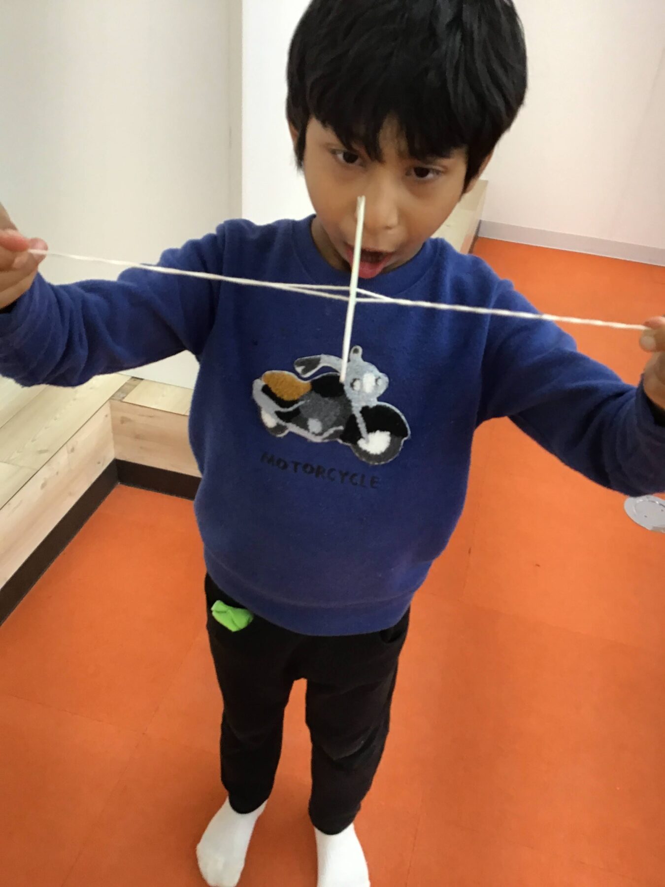 自由時間では、傘を入れる袋で作るロケットを学校で作ったお友だちが、ガーデンのお友だちにも作り方を教えてくれました(*^▽^*)