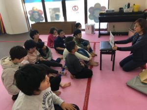始まりの会の前に、サポーターのかみしばいの読み聞かせがありました。
