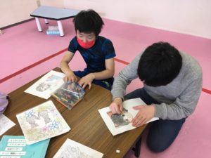 さて、お昼ご飯を食べた後は、コーナー遊びをしました。最近リッキーではぬり絵がとてもはやっていて、みんな集中して取り組んでいました。そのほかにも、カードゲームをしたり、くみくみスロープやレゴブロックでのんびり遊びました!