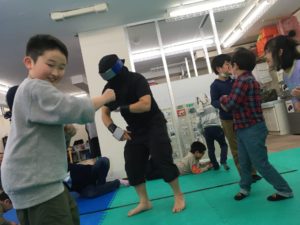 敵の忍者役として高学年のお兄さんがお手伝いをしてくれました。