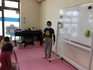 緊張で体がカチコチになってしまいお友達の方がちゃんとできていましたね。