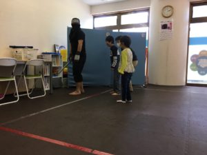 最初は忍者さんから手遊びの術を教えてもらいました。