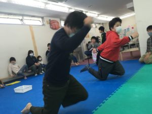 おともだちやサポーターと手をつないだら、ジャンプ×10回