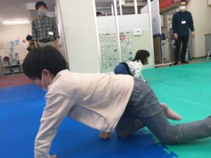 ひざ歩きやハイハイといったほぼ前回と同じメニューをこなしてくれました!
