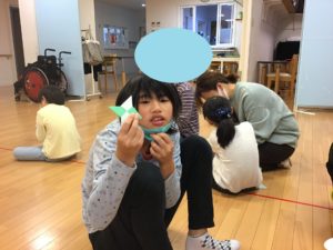 折り紙で作った手裏剣で的あてゲームを行いました(^O^)/