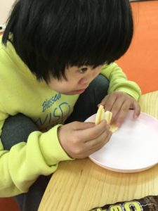 個別活動の後におやつを食べてエネルギーチャージをします🍩