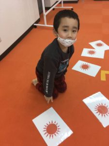 カードめくりではフロアにあるカードを自分のチームの柄に多くめくった方が勝ちというルールです!