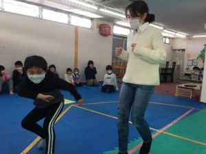 運動活動は昨日に引き続き「線おにごっこ」を行いました。