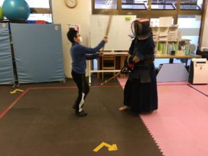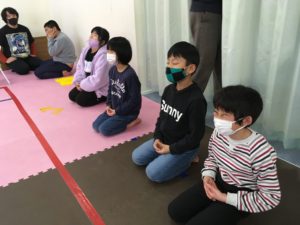 ちょうど剣道教室で黙想をするので、「黙想は心を静かにする練習。気持ちの切り替えの練習になるよ。」