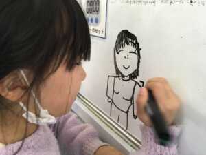 活動が始まる前に早く来ていたお友達がホワイトボードに何かを描いています…。