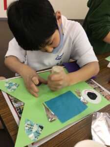 材料は、予め切っておいた画用紙、お花紙、お弁当のカップを切ったものです!