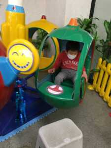 ジャングルジムのコーナーですべり台やボールプールでの様子