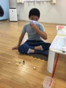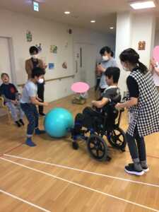 玉入れはたくさん入るように数個一緒に投げたりして白熱!!