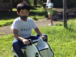 その後は場所を移動し、ばね馬やローラー滑り台があるコーナーへ。