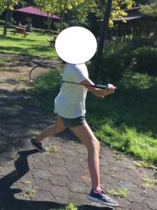 駐車場からアスレチックやそり滑りができる場所までは少し距離があるので、2列で歩いて向かいました。